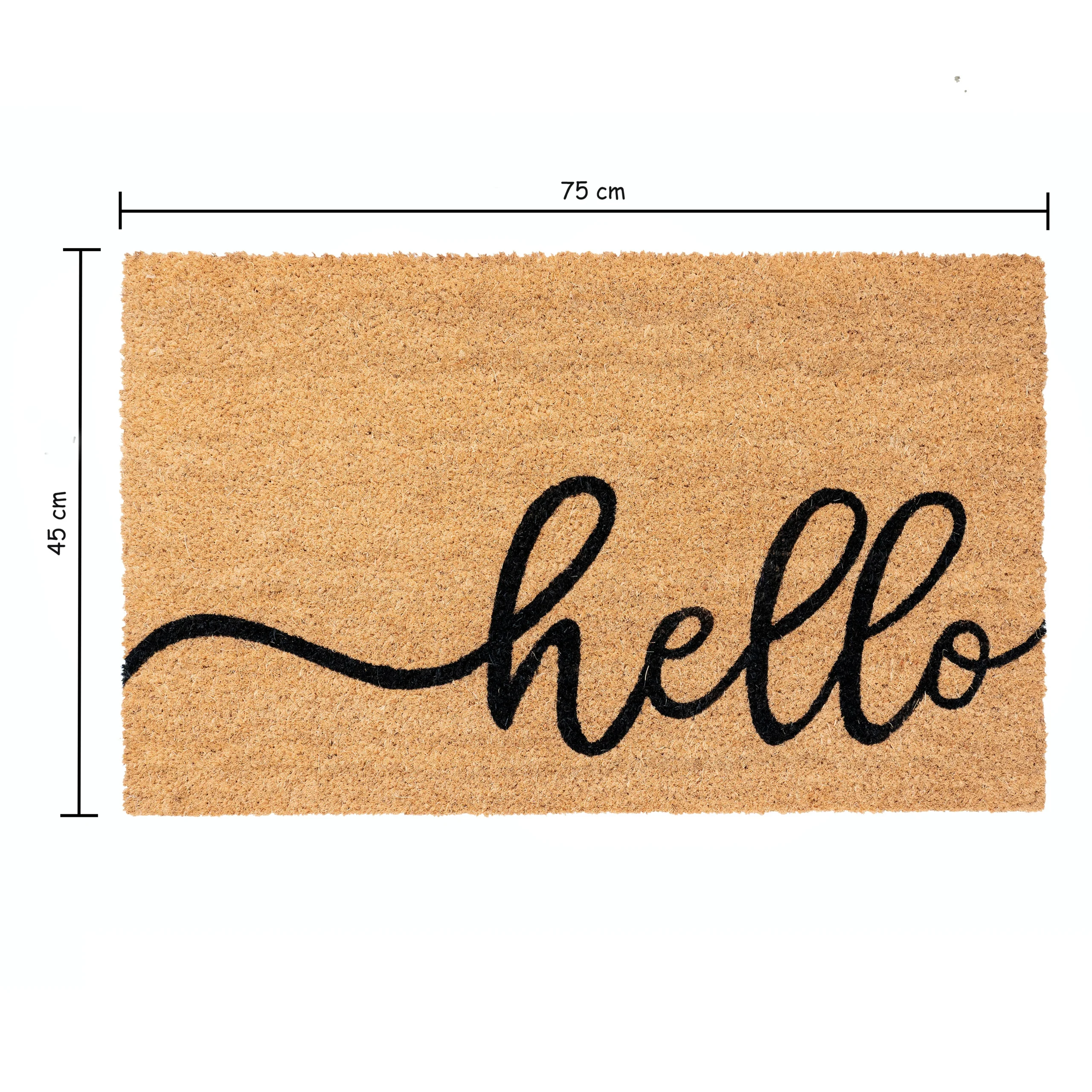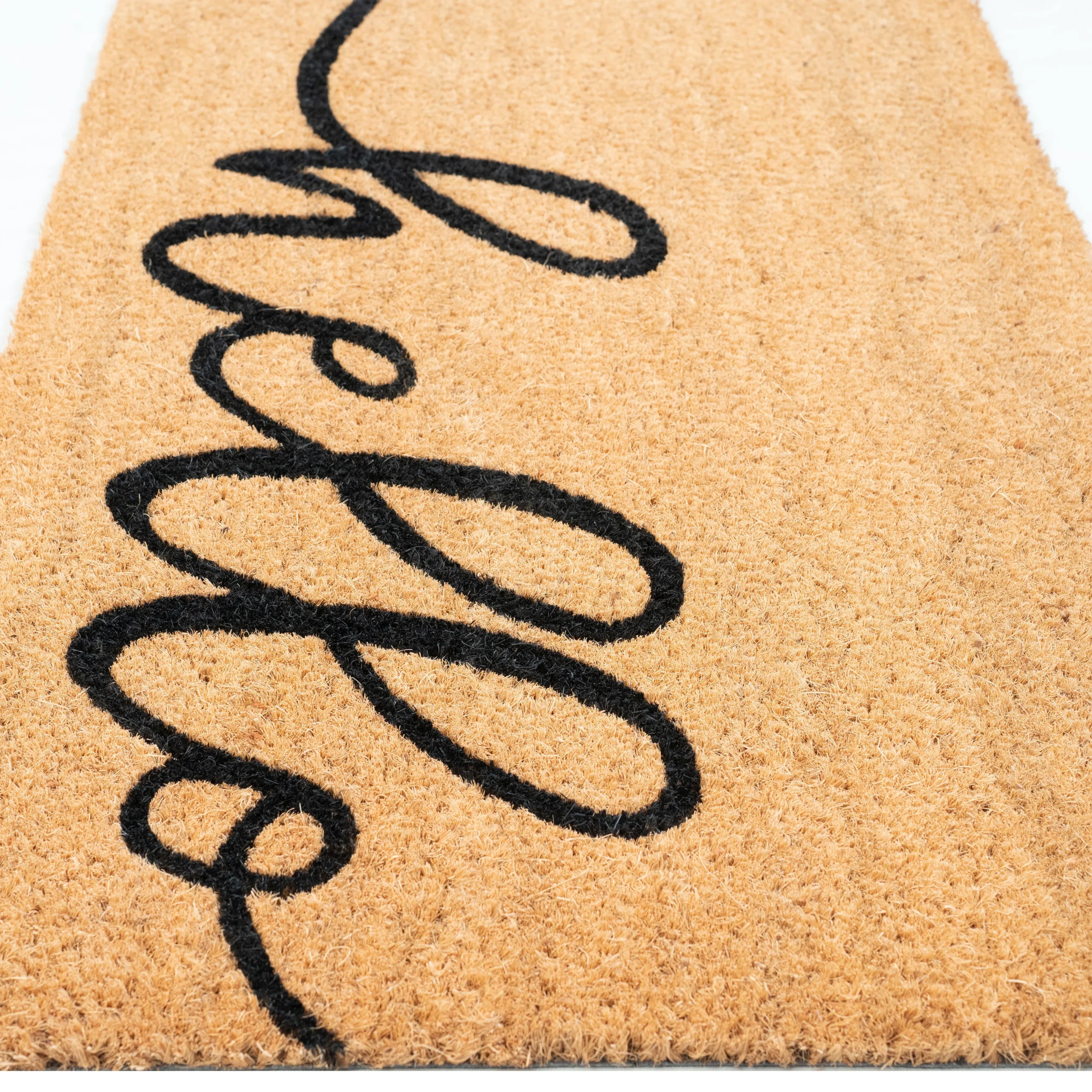 Upgrade your doorway with the HELLO Print Coir Doormat, crafted from premium natural coconut coir fibers for superior durability and eco-friendliness. Its bold HELLO design adds a stylish, inviting touch to your entrance.